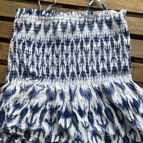 Lett sommerkjole fra Mango. Blå med palme-mønster.