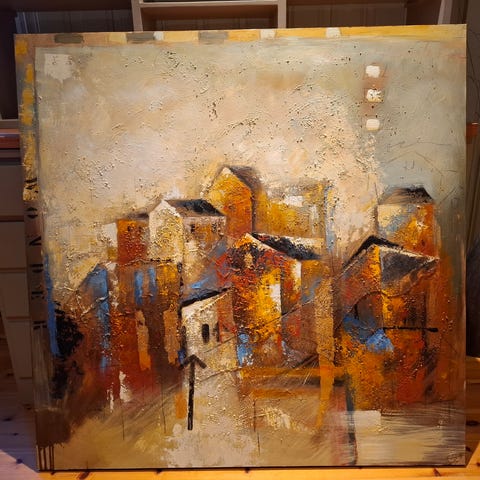 Dekorativt bilde. Bredde 150 cm. Høyde 100 cm. Meget god stand. Må hentes.