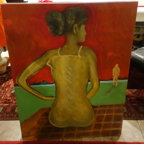 Dekorativt erotisk oljemaleri, sign Khaled Bazzi -97