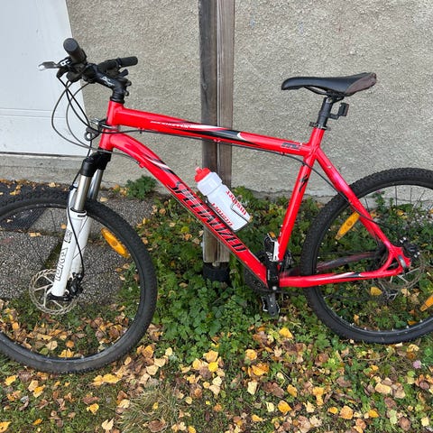 The bike includes an additional bottle holder, rear light, Squirt chain wax, multitool, and much more for bike repair (everything in the photo).