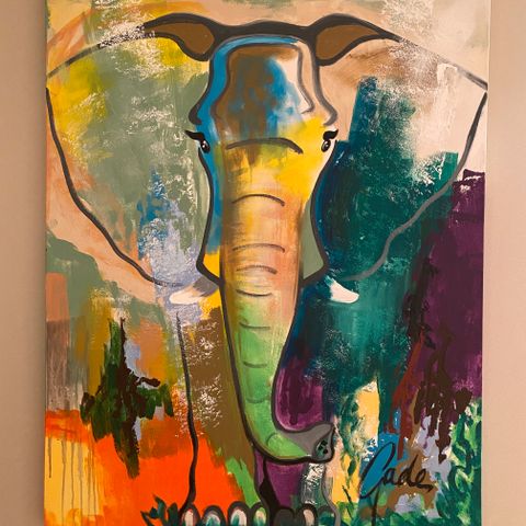 maleri med collage, collagekunst, decoupage kunst, mixed media, originalt kunstverk, håndlaget kunst, akryl og collage, deep edge lerret, 40x40 cm, elefant kunst, elefantmotiv, elefanter, savanne, afrikansk inspirert kunst, dyremotiv, naturmotiv, symbolsk kunst, vandring, reise, styrke, visdom, varme farger, gult sort rødt, mønster, grafisk uttrykk, samtidskunst, bohemsk kunst, kunst til stue, veggkunst, statement art, gave kunst, unikt kunstverk, kunst til hjemmet