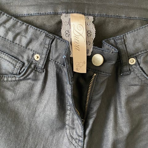 Buksa har glidelås i siden og stilige splitter nederst på beina.