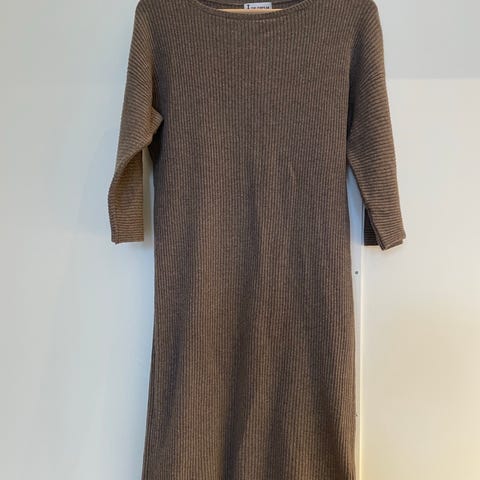 Selger strikkende kjole fra Mango,pent og lite brukt. Beige farge med gulle diskrete glitter.Åpent rygg.