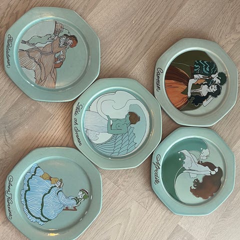 Håndmalt vase og fat i porselen selges kroner 50,-. Vasen har en brest på baksiden. Klikk gjerne på navnet mitt i annonsen for å se andre ting jeg selger på Finn.