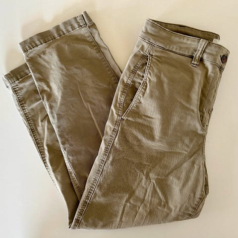 Str 40, livvidde 37 cm x 2, ben innerlengde 76 cm. Lårlomme med glidelås.