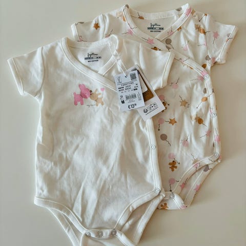 Søt mønstret omslags body med kort arm fra Lindex i bomull. Helt ny, ble feil str her ift årstid (fikk den i gave).