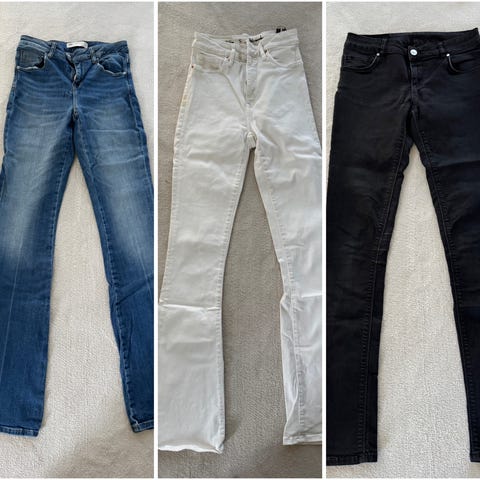 Selger en klespakke av skinny jeans. Buksene er pent brukt og fremstår som ny. Pakken inneholder: