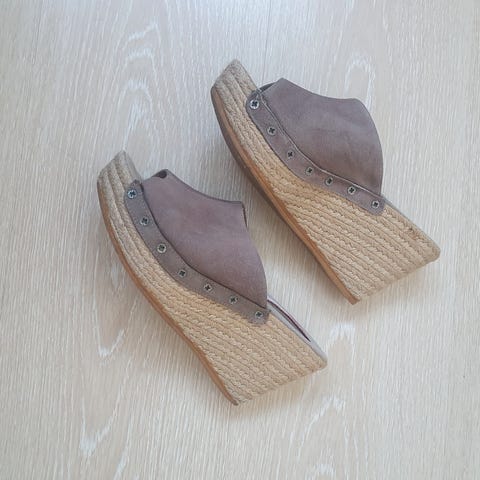 Selger kjempesøte og ubrukte sandaler/espadrillos i semsket skinn. Sorte.