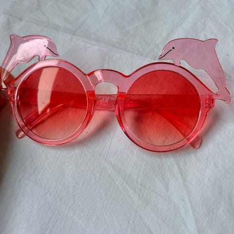 Pent brukte ceriserosa Lacoste barnebriller. Vet ikke hvilken str., står diverse tall på innsiden av bogene (se og zoom på bilde 5 og 6). Vår datter brukte disse da hun var 8 år.