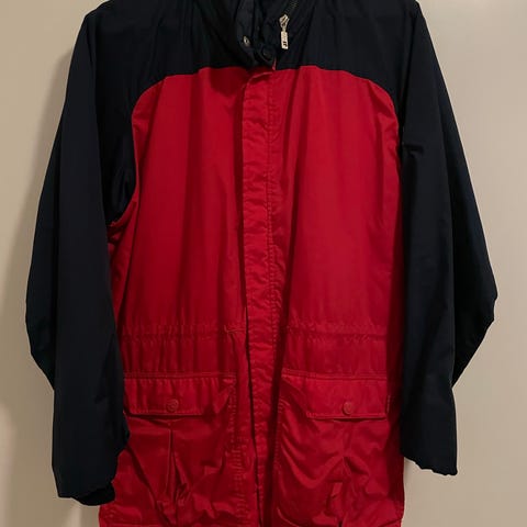 Jakken er inspirert av det norske flagget, med flotte detaljer i rødt, hvitt og blått. Den har hette med snøring, glidelås foran og er laget i et behagelig stoff som passer perfekt til nasjonaldagen – eller andre anledninger der du vil vise litt ekstra norsk stolthet!