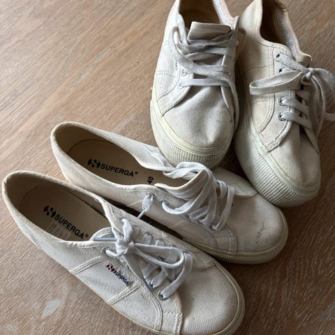 Pent brukte grå superga sko i semsket skinn selges. Litt slitt/tydelige merker bal hvor det står Superga.
