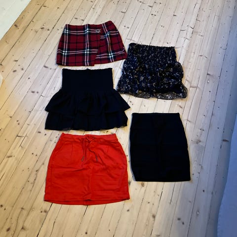 Fine skjørter i forskjellige farge og materialer. Passer til hver anledning. Selges per stk. 50 kr. Samlet 150kr. Str. S
