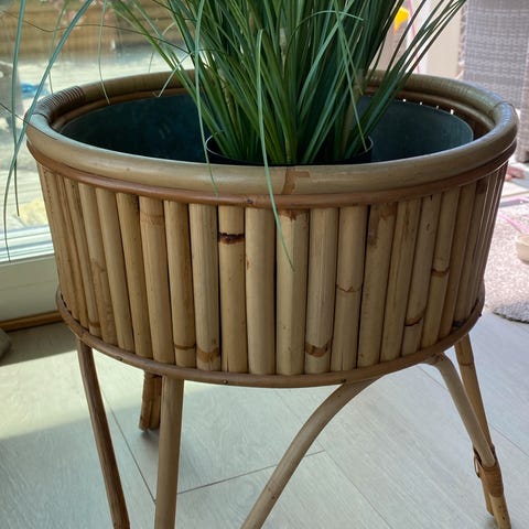 Hvit vasketralle til salgs. Trallen har vært brukt innendørs som blomsterpotte, og fungerer svært godt som dekorativt interiørelement.