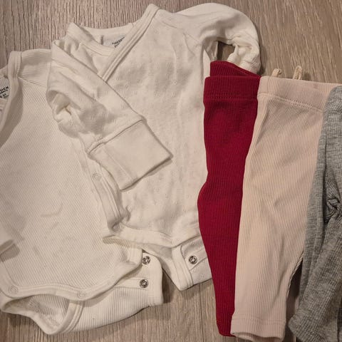 3 bodyer, 2 leggings og 3 stk. bukse med fot. Se info under bildene.