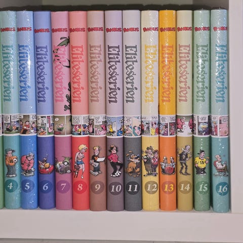 Bøkene er svært pent brukte,noen fortsatt i plast. (9,10,11,12,14)