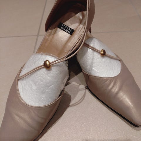 størrelse 39, laget av rosa skinn. Skoene har en dekorativ blomst på oversiden og firkantet tåform.