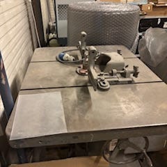 Metallfres fresemaskin Cincinatti Millacron 2MK ISO 50. Selges som vist på bilder. Clutch er ødelagt på spindel og må repareres, reparasjon er påbegynt men har en fresemaskin til så trenger ikke denne og selger denne gunstig til en trengende. Følger med det som er på bilder. Vekt antatt 3000kg. 2 motorer begge på 400 volt. Har vært trøbbel med hurtig mating så har kjørt denne på lavfart mating eller manuelt. Fresen virker stram og fin. Har alltid stått inne under tak. Selges prisantydning eller bud. Bare vekten på stålet er vel ca 15.000 hos skraphandler? Kom med bud.