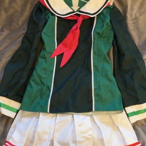 Hei, jeg selger mitt tsukasa yugi cosplay i M. Den er fra doki doki, versjon SR. Stoffet er flott kvalitet og føles ikke plastikk aktig ut :) Den er så vidt brukt! Kommer ikke med parykk.