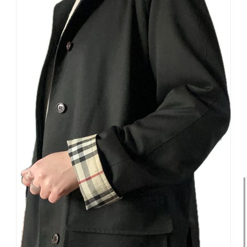 Str 38 tilsvarer UK 12 - litt trang i ermene. Det er en "sommer-frakk" ikke beregnet til veldig tykk genser under.