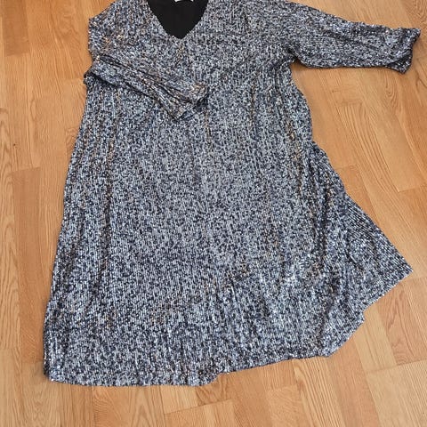 Selger en vakker kjole fra Mina UK, pent brukt og i god stand. Kjolen har et lett og luftig fall med delikat mønster som gir et avslappet, men gjennomført uttrykk.