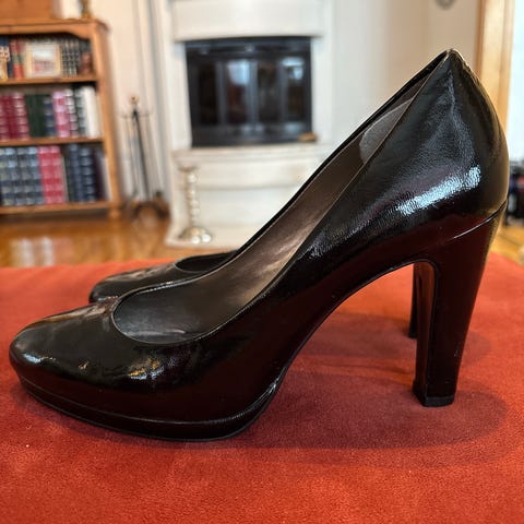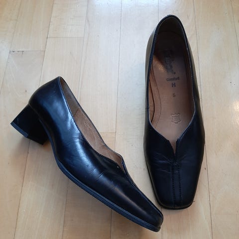 Klassiske svarte pensko fra Gabor. Platå i forfoten. Veldige gode å gå i, men er en størrelse for stor for meg, så de er kun brukt 4-5 ganger.