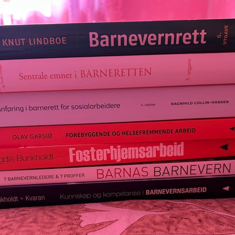 Selger diverse pensum fra bachelor og master-studie av barnevern. Er også litt "frivillig" tilleggs-kos til studiene.