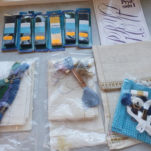 Diverse størrelser Aida, lin og jute - til broderi evt andre håndarbeidsprosjekter.