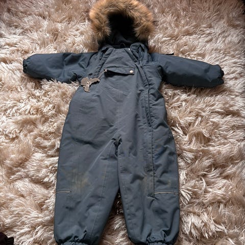 Selger denne vinterdressen ifra Wheat da den vil være for liten til neste sesong. Den har fått litt hard medfart i baken og har fått seg er lite hull. Det kan evt sys el lappes. Fått noen bruksmerker og mangler den ene fotstrikken. Det går an å få tak i nye:) ellers er dressen hel og fin. Masse bruk igjen:)