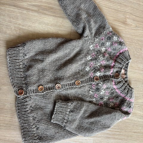 Dahliajakke strikket i bomullsgarn. Perfekt til sommeren.