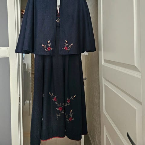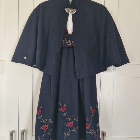 Maximila festdrakt med skjorte og belte veske og Cape sjerf str 14
