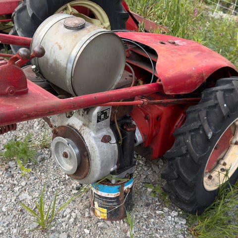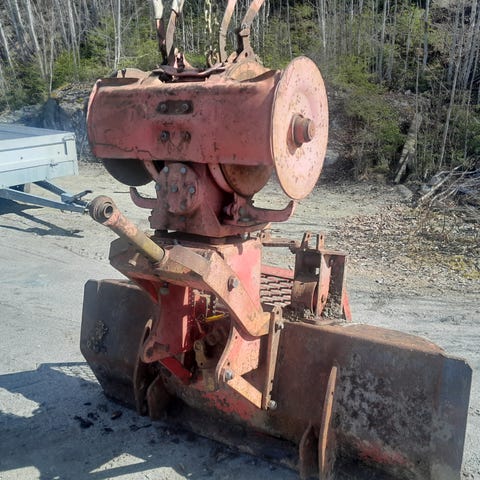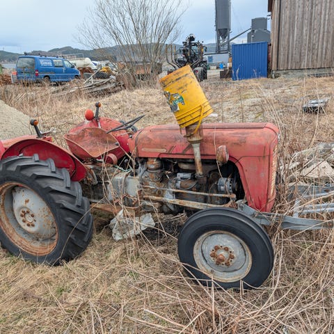 1960 mod. Startar og går fint, men det er noko gale med clutchen. Frontmontert tippvogn frå Lid Jarnindustri. Gi bud!