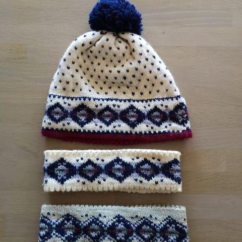 Strikket Mariuslue og løse armer/bein. Fint tilbehør til Mariusgenser.