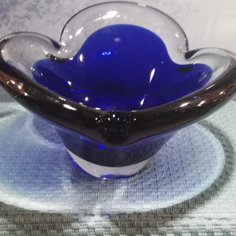 Pokalvase i blått krystallglass, form. Boro/Slovakia (29 cm H)