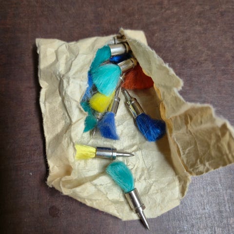 3 esker med kaliber 4,5mm. Og en heimelaga blink.