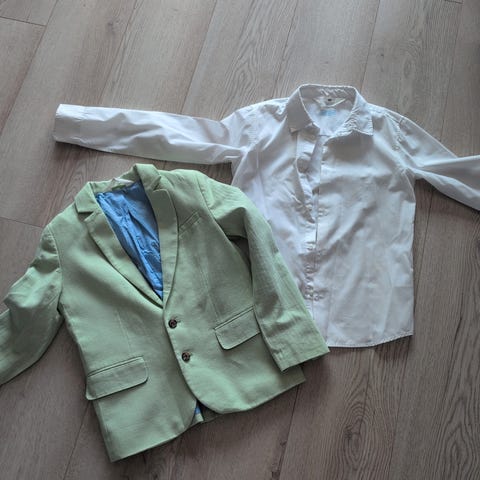 Pent brukt blazer fra H&M. Jeg har hvit shirt som passer. Ref. https://www.finn.no/331358223