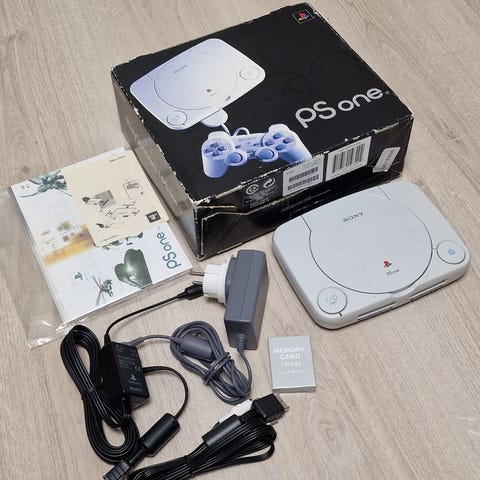 playstation one (chippet) med 14 spill 1 kontroller og minnekort