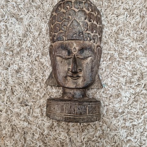 2stk masker av solid tre med sort trefot selges. Den store av dem er ca 41cm høy.