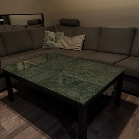 Marmorplaten er solid og tungt. Det trengs minst 2 personer. Kan være behjelpelig.