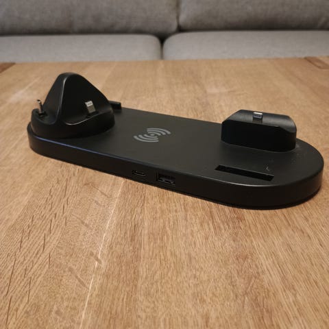 Trådløs ladestasjon til mobiltelefon, Apple Watch og AirPods.
