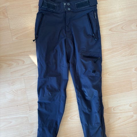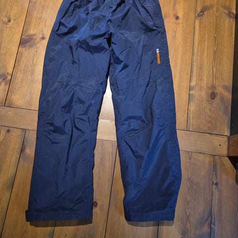 Selger utebukse, Skogstad, som er slitt nederst på ene beinet (tråkket på). Snøring i livet og borrelås på beina. Glidlås på lommene.