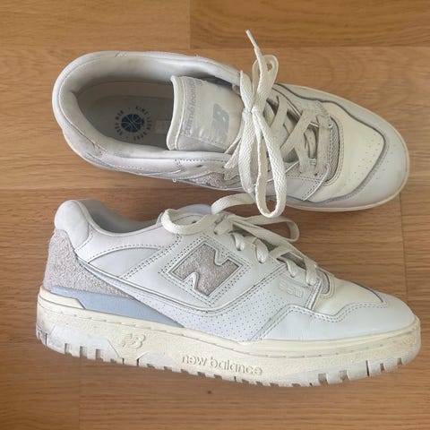 Selger disse pent brukte New Balance 550 x Aime Leon Dor. Skoene er i gode materialer (skinn og suede), og er samtidig svært komfortable å bruke over lengre tid.