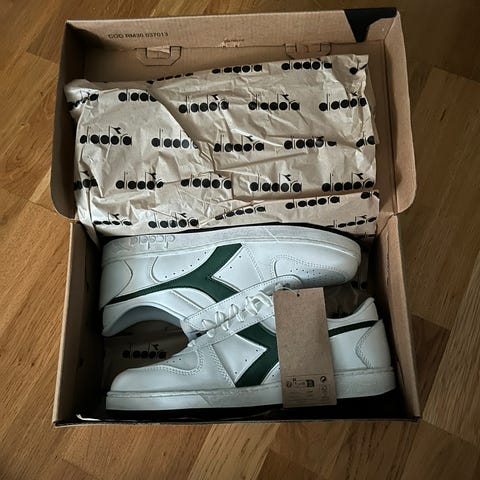 Klassikeren Diadora Borg Elite. Str US7/EU40. Litt store i str. Legendarisk modell og disse er fra en utgivelse i 2007. En av få. Kan sendes og hentes/overleveres i Oslo.