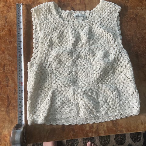 Heimestrikka bohemsk singlettopp frå 60-/70-talet. Veldig luftig og god, og moderne no.