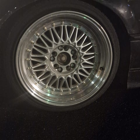 Den ene framfelgen er litt kantkjørt, se bilde