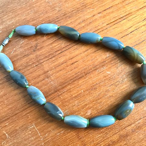 Pent vintage håndlaget bohemsk sølv halskjede med perle og halvedelstener selges kr 250,-