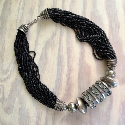 Pent vintage håndlaget bohemsk sølv halskjede med perle og halvedelstener