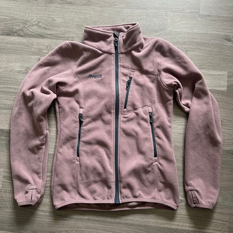 Lun og god fleecejakke i friske farger av modellen Bryggen fra Bergans. Modellen fås ikke lenger kjøpt i butikk. Størrelse: 152