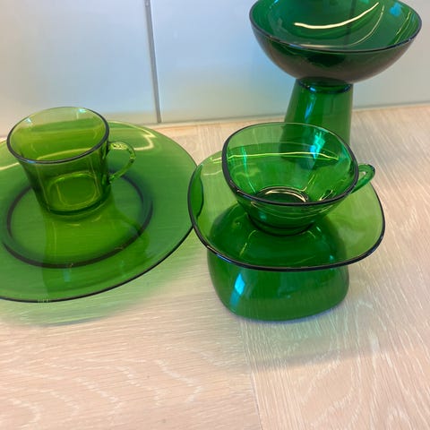 Grønn Vereco deler til te servise selges. Kr 25,- pr del. 25,- for skål 25,- for kopp 25,- for liten bolle. Kr 225,- for alt samlet. Kan sende med sporing + 69