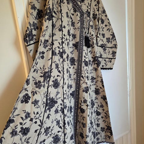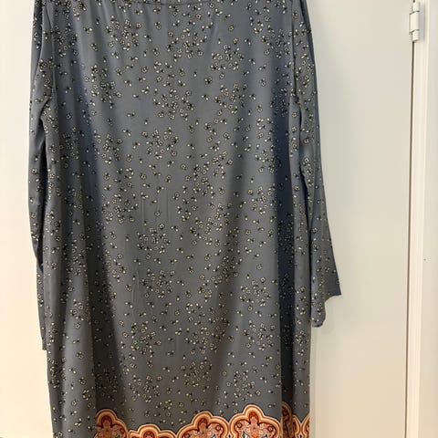 Det er den beste kjolen som passet best i sommer med fine detaljer og mønster og ingen andre har en sånn som du har.Faller pent på kroppen med lite split på sidene se bilde . Er som ny kan sendes