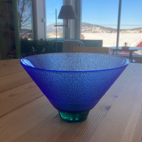 Flott butikk bolle fra serien Kairo designet av Lena Hansson for Hadeland Glassverk. Diameter ca 19,5cm og høyde ca 11,5cm. Ingen skader og lite slitasje. Billigste porto utenom fiksferdig er 69kr med Postnord.
